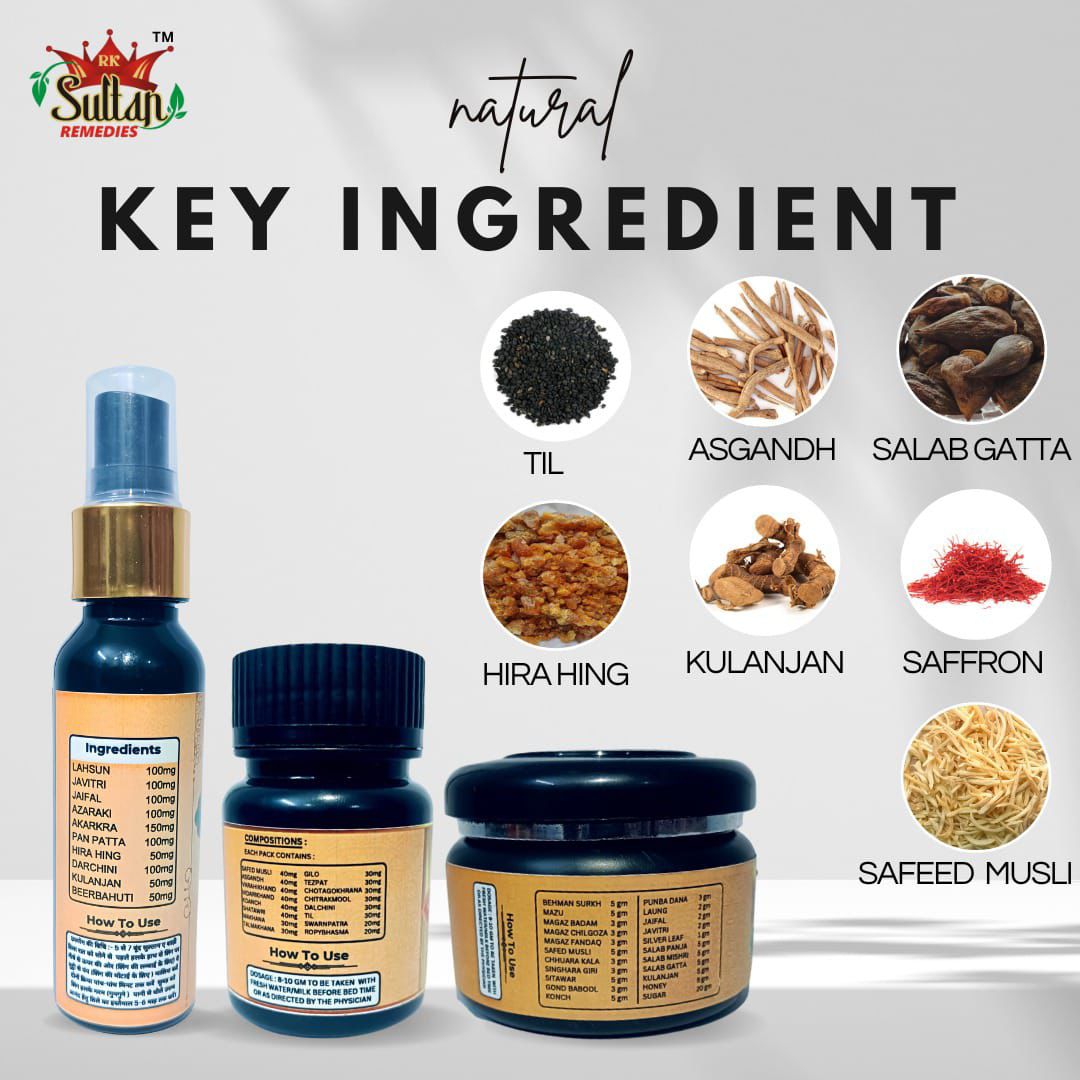 Discover the power of Ayurveda with the Sultan-E-Shahi Wellness Pack – a carefully crafted blend of traditional herbs designed to support men’s vitality, stamina, and confidence.